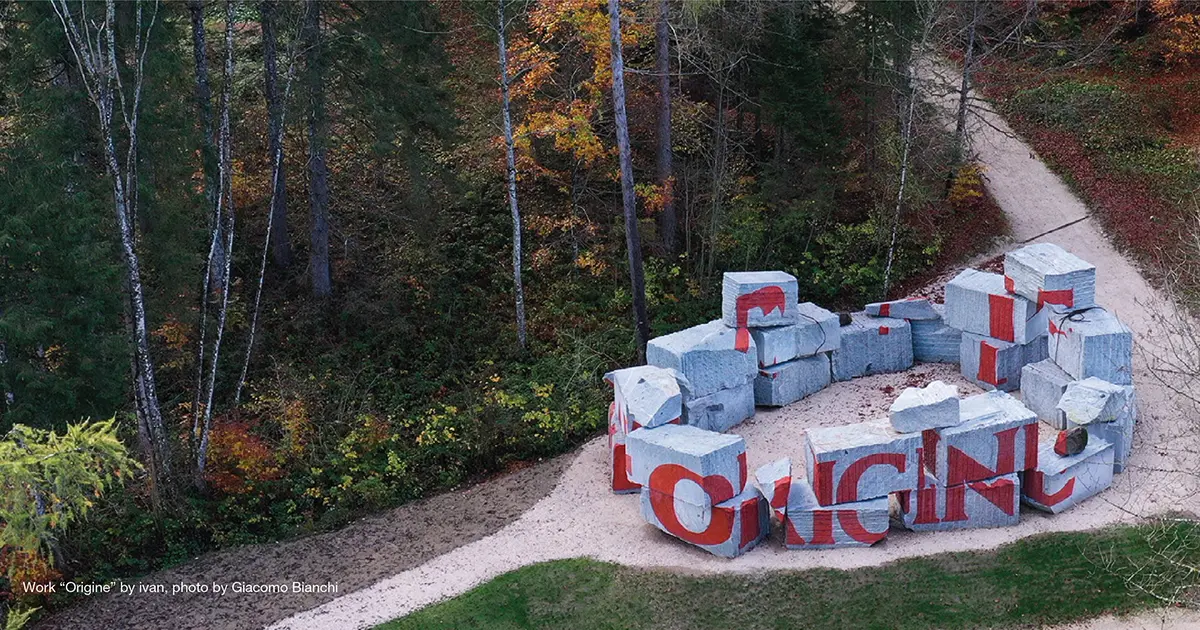 Il seminario riguarda diverse opere che utilizzano pietre ad Arte Sella, nell’ambito della sezione architettura, e l’opera Origine dell’artista ivan.